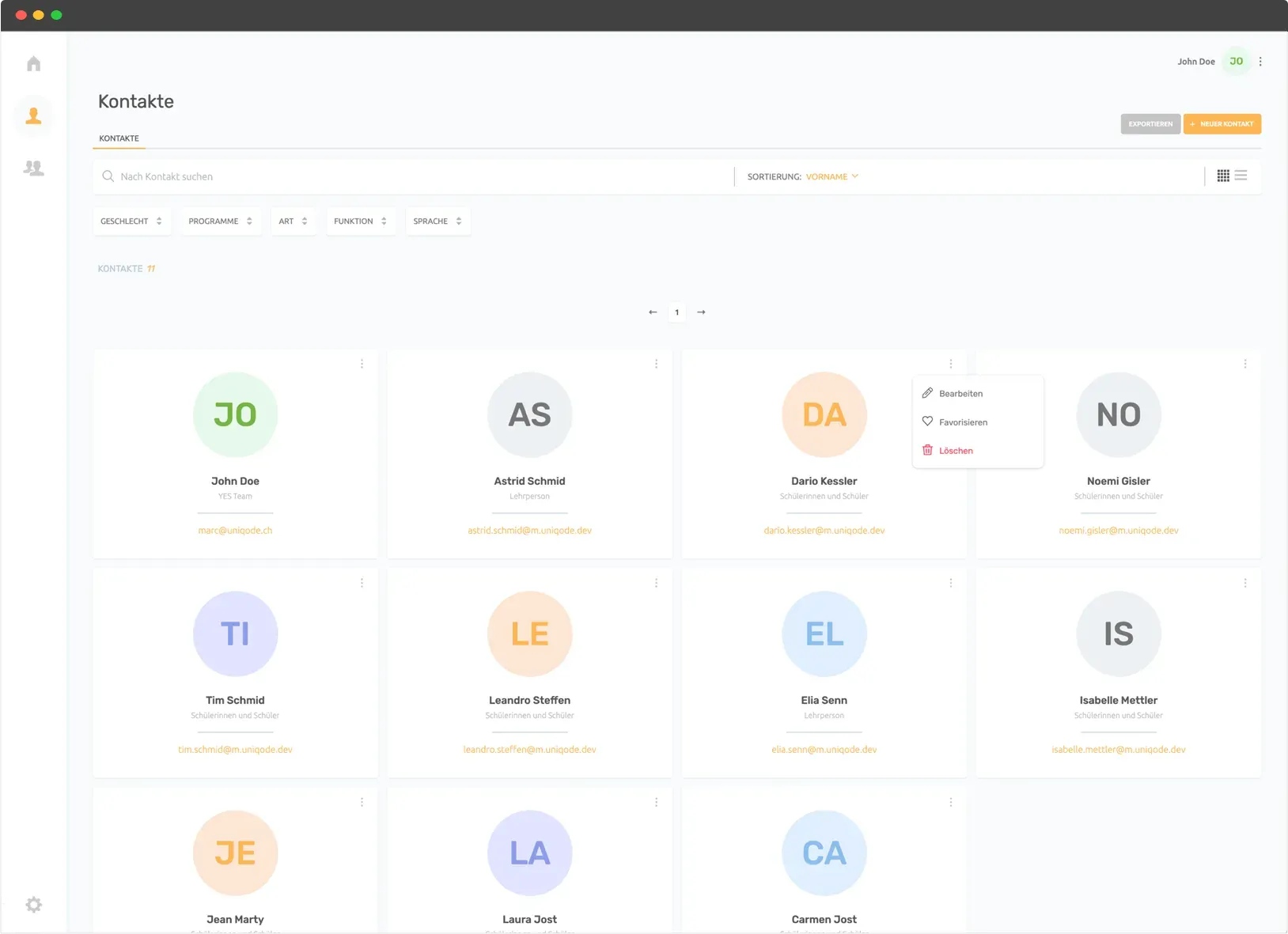 - Neue Kontakte können manuell erfasst werden.